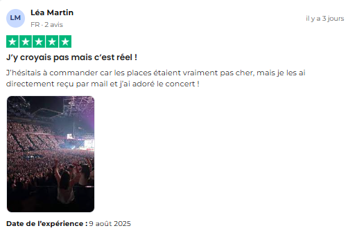 Pour lutter contre le marché noir, les billets et/ou parkings achetés seront uniquement disponibles sur notre site à l’approche du concert.